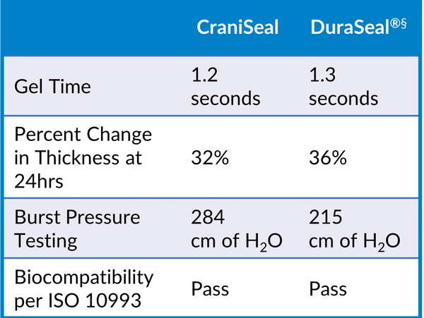 CraniSeal has been determined by the US FDA to be identical to the DuraSeal® Dural Sealant.