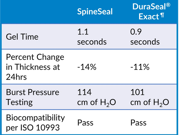 SpineSeal has been determined by the US FDA to be identical to the DuraSeal Exact® Dural Sealant.